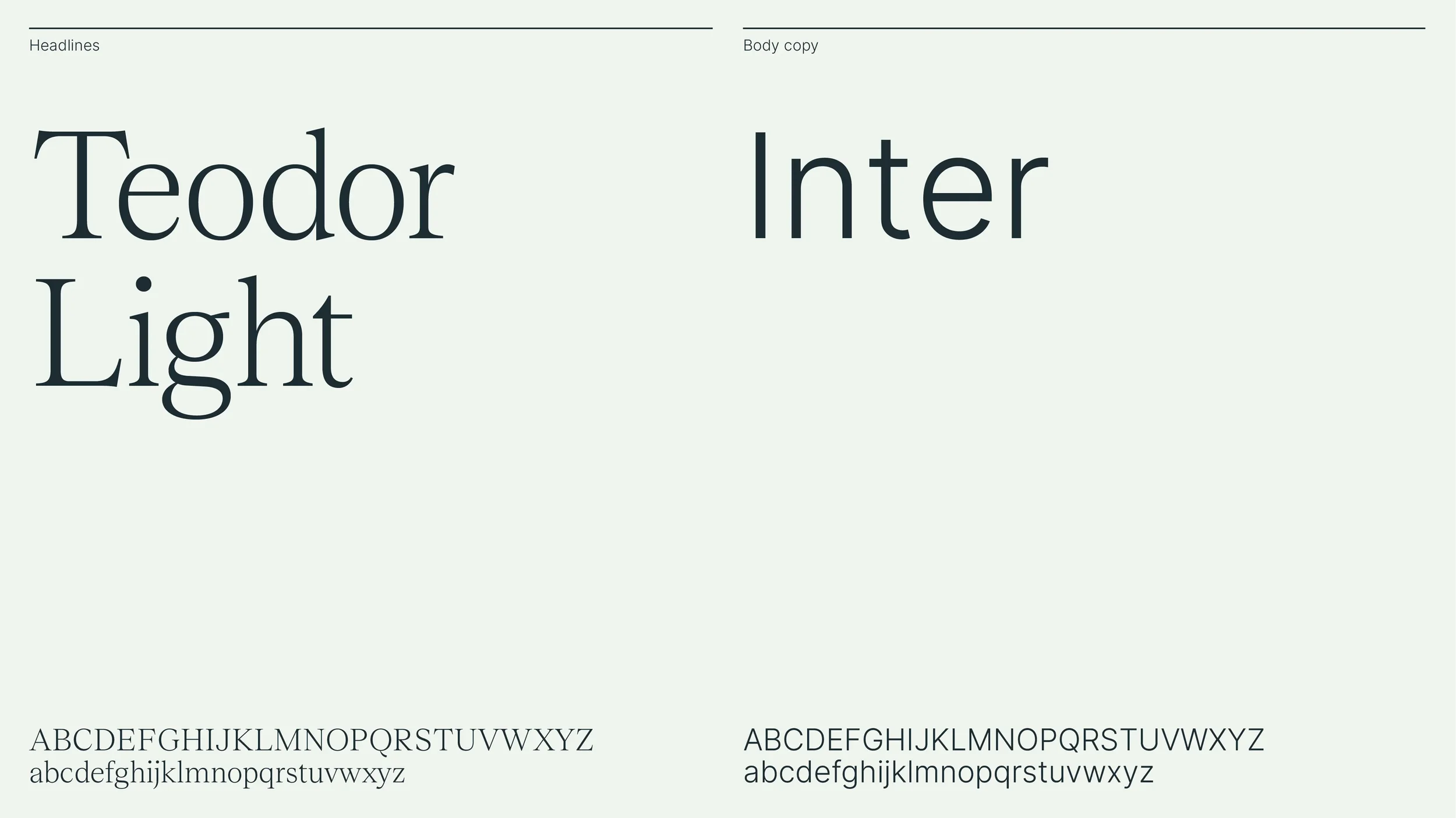 This theme is also reflected within the typographic choices. A timeless, rounded serif headline font sets a refined tone of voice but with an approachable softness, and is supported by a clean and simple sans serif.
