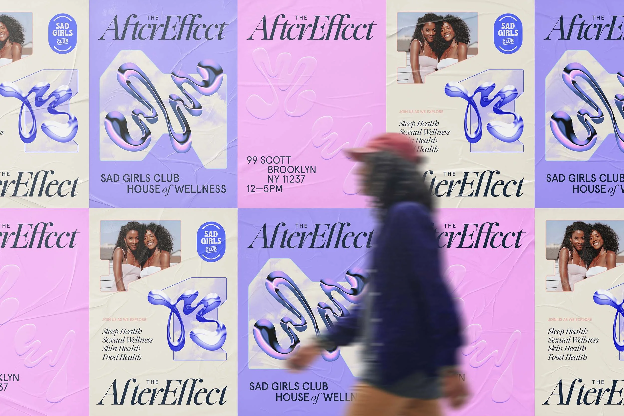 The visual kit is playful and dynamic, with ‘liquid zen’ shapes to bring energy to the creative, and a bright colour palette that complements the Sad Girls Club brand. A new, serif typeface gave the event an elevated feel, while imagery and textures cropped in modular shapes added a distinctive element for real stand out.